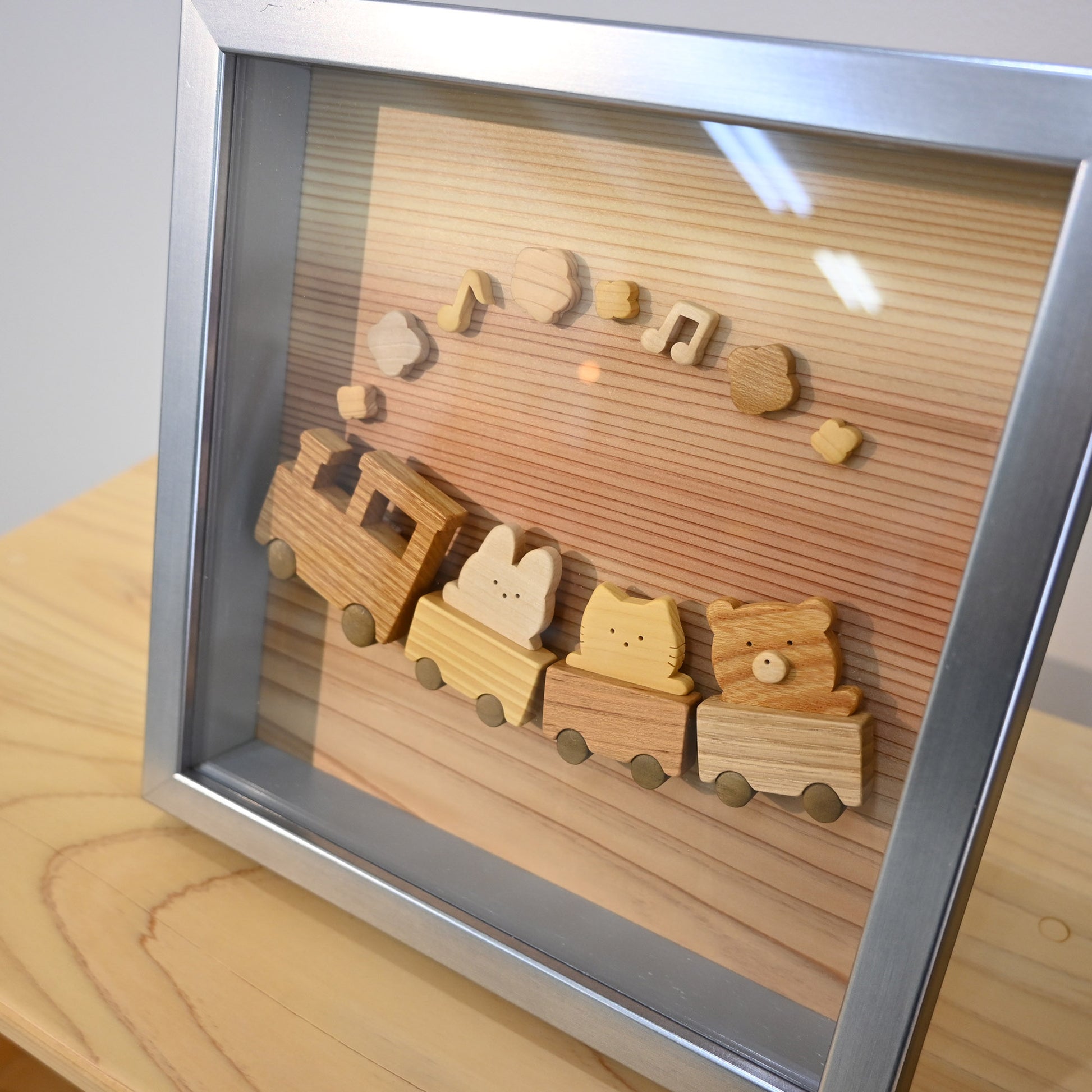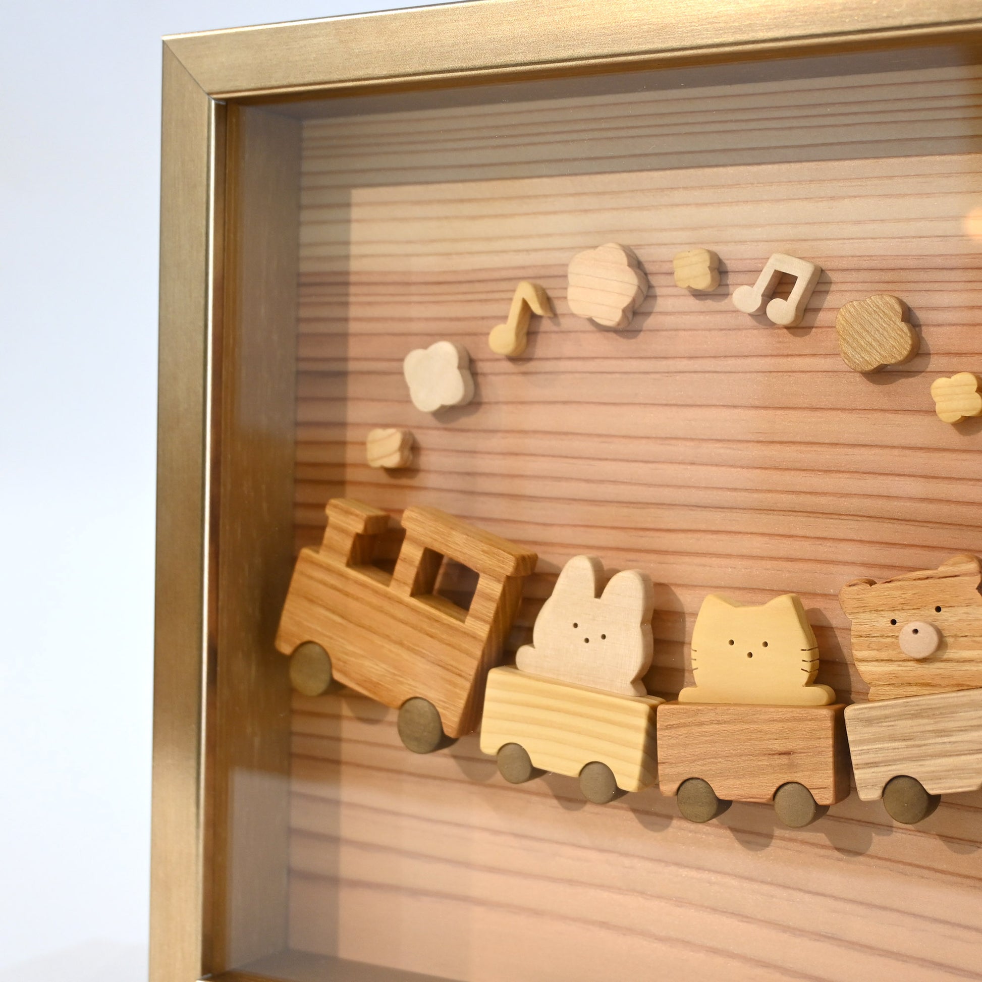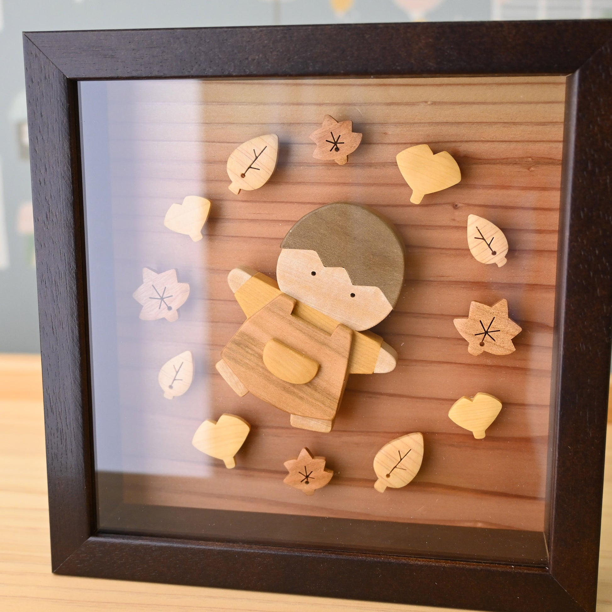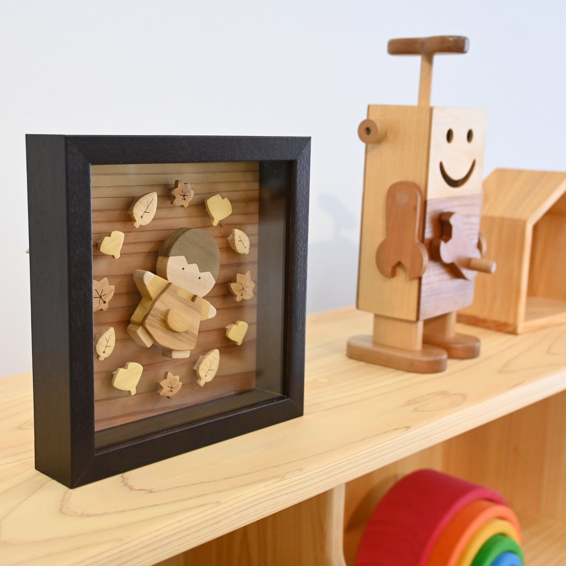 絵は木のボックス額に立体的に収められており、まるで小さな「木の箱庭」のよう。