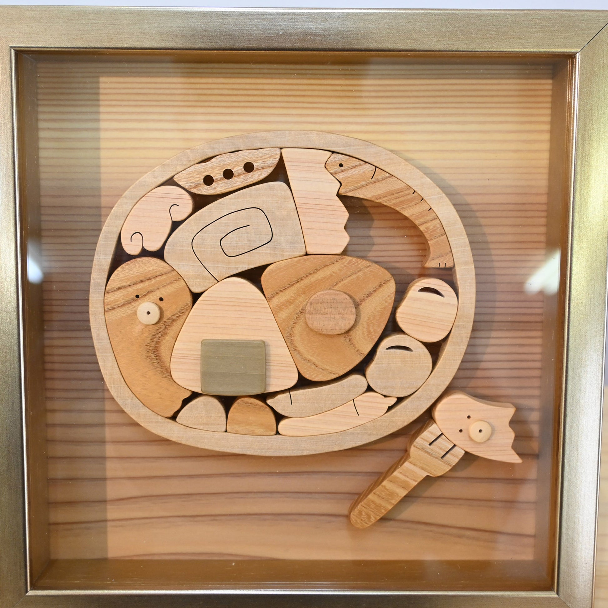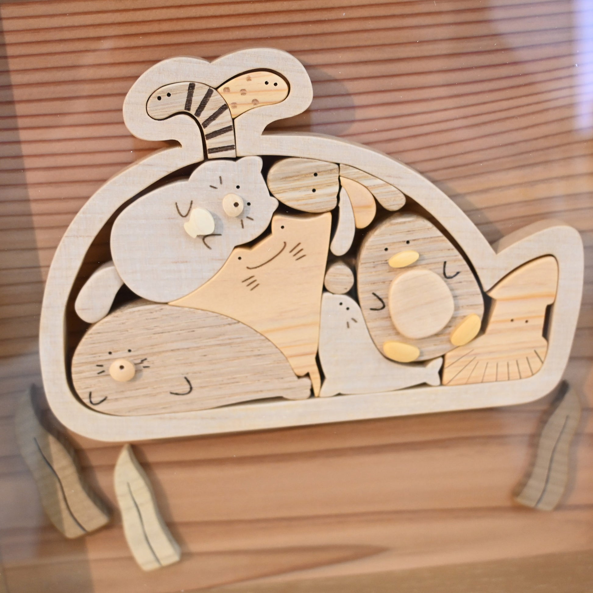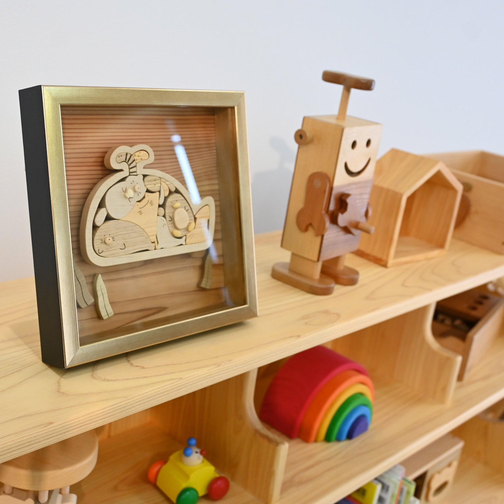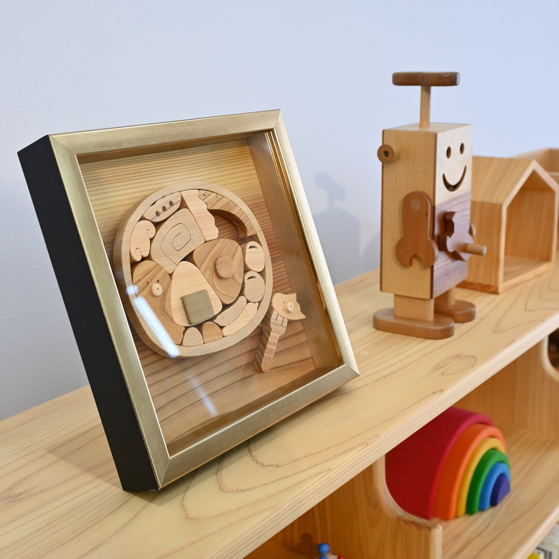 子どもも大人も楽しめる、インテリアにもぴったりな木のアート作品です。